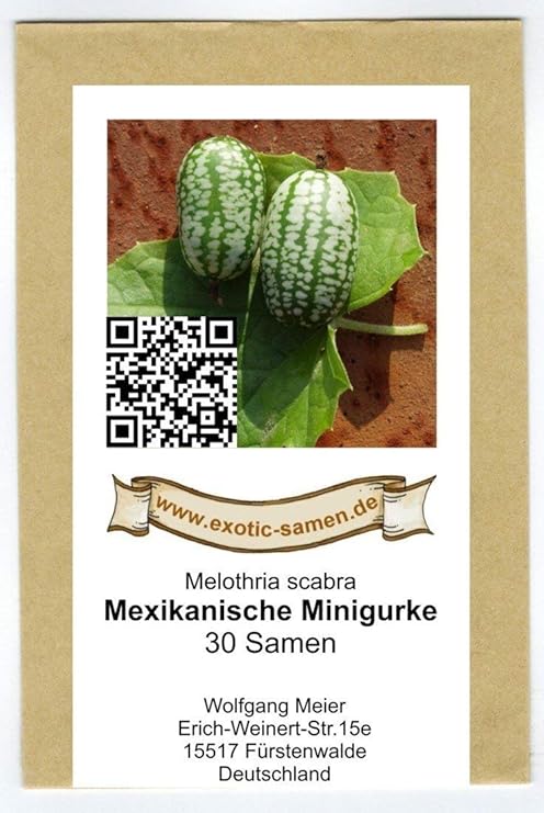 Wie kleine Wassermelonen sehen die mexikanischen Minigurken aus - nur sehr viel kleiner! 2 bis 3 cm groß sind die Früchte, die den ganzen Sommer über reifen und wie eine Salatgurke schmecken. Das Fruchtfleisch dieser Mini Wassermelone ist saftig, knackig, fast ohne Kerne, erfrischend und leuchtend rot. Die knackigen Früchte passen in den Salat oder sind ein gesunder Snack zwischendurch. Sie können direkt von der Pflanze genascht werden. Ebenfalls wie andere Melonensorten braucht Minigurke Saatgut einen sonnigen, warmen und geschützten Standort. Wassermelonen lieben nährstoffreichen, humosen, geschützter Lage. Wichtig ist eine gute Wasserversorgung und Wärme. Melonen benötigen Platz im Beet, da ihre Triebe sehr lang werden können, daher ist ein Pflanzabstand von 80 x 100 cm sinnvoll. Das Aroma steckt vor allem in der Schale der Gurke. Sie können Sie übrigens auch in Marinade oder Essig einlegen. Nach dem letzten Frost kann die mexikanische Minigurke an einen sonnigen, windgeschützten Platz ins Freiland gepflanzt oder in einen Kübel gesetzt werden.