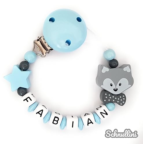 EINZIGARTIGE, personalisierte und in Handarbeit gefertigte Schnullerkette, die auch gerne als Kinderwagenkette genutzt wird, der Marke LALALO mit dem Namen des Kindes. Schnullerkette / Schnullerhalter mit Namen, Motivperle Fuchs INDIVIDUELL: Ob Babygeschenk zur Geburt, Taufe, Geburtstagsgeschenk oder Weihnachten - eine süße Nuckelkette als persönliches und individuelles Geschenk. HOHE QUALITÄT: Die verwendeten Materialien wurden in Deutschland hergestellt, sind schadstofffrei, rost- und nickelfrei, schweiß- und speichelecht nach §64 LFGB B 82.10-1 und entsprechen den Anforderungen der DIN EN 71-3. MATERIAL: Verwendete werden Perlen und Motive aus Holz, Schnur aus Polyester, Buchstaben aus Kunststoff - alles lutsch-/speichelfest und völlig schadstofffrei in höchster Sorgfalt ausgewählt. HANDMADE: Die Schnullerhalter Babykette mit Wunschname ist in liebevoller Arbeit handgefertigt und mit qualitativ hochwertigen Materialien verarbeitet. Ihren Wunschnamen geben Sie über die Anpassungsoption ein. › Weitere Produktdetails