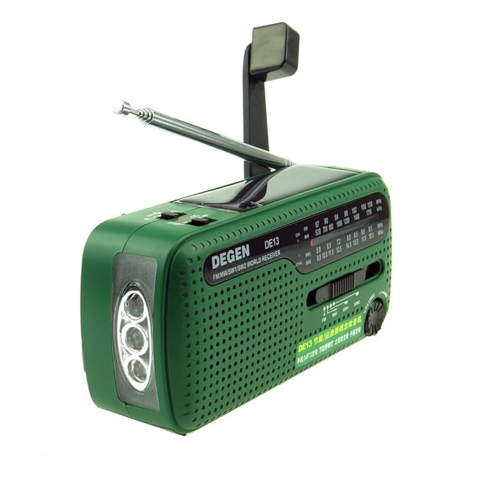 Solar Kurbelradio: Radiofrequenzen im FM-(87-108.0 MHz) ,AM-(520~1710 KHz),WB Bereich empfangen werden,eine ausziehbare Antenne für einen besseren Empfang ohne irgendwelche Störungen. Klare Klangqualität, kann Echtzeitnachrichten verstehen.Ist das beste Geschenk für Großeltern LED Dynamotaschenlampe: 3 helle LED leuchten bei Dunkelheit gut,die Helligkeit wie eine normale Taschenlampe.Gleichzeitig Radio hören und Taschenlampenfunktion nutzen funktioniert ebenfalls Powerbank: als Powerbank kann immer Handy, Pad und MP3 aufladen,durch Kurbel-Dynamo oder Solar-Panel auch,ideal für Notfälle,Wandern,Camping,Ourdoor Klein und Waaserdicht: Es ist Klein und handlich (ca.12.8 x 6 x 4.5 cm),ein Gewicht von 200 Gramm, mit IPX3 gegen Sprühwasser im Winkel von 60°geschützt Drei Arten von Ladeverfahren: Der interne 300mAh Akku kann entweder mit dem USB Kabel, dem Solarpaneel oder durch die Handkurbel aufgeladen werden. WEEE NR. DE 36100850