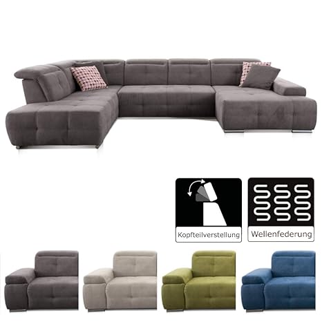 Gemütliche XXl Sofalandschaft / U-Form mit aufwendiger Steppung Bettfunktion und verstellbaren Kopfteilen