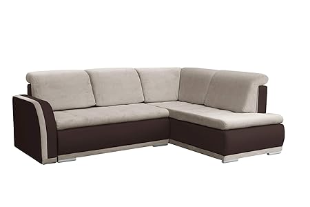 mb-moebel kleines Ecksofa Sofa Eckcouch Couch mit Schlaffunktion und Bettkasten Ottomane L-Form Schlafsofa Bettsofa Polstergarnitur Cannes (Braun + Beige (feiner Webstoff), Ecksofa Rechts)