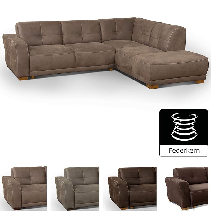 Cavadore Ecksofa Pisoo / Eckcouch mit Schlaffunktion / L-Sofa mit hochwertigem Federkern im klassischen Design / Ottomane rec