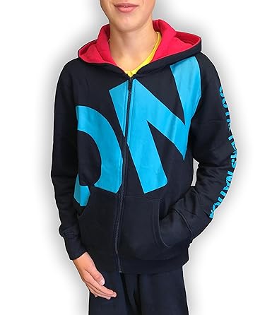 Die Jacke wird mit einem Reißverschluss geschlossen und hat Kängurutaschen. Türkis/Gelb 100% Baumwolle Modellnummer: 410 6