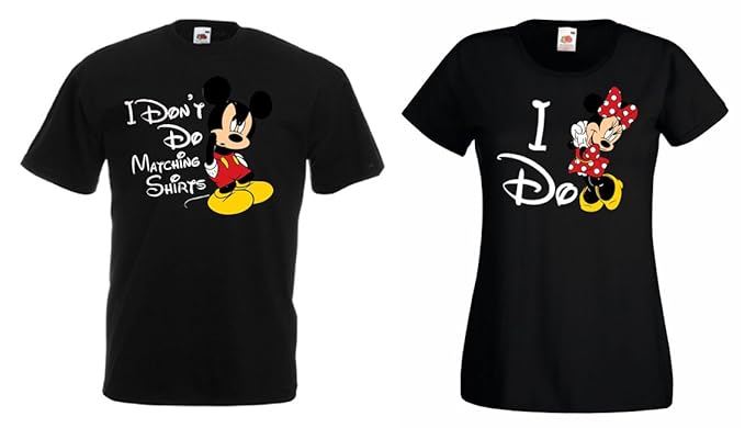 T-Shirt-Set Lieferumfang: 1 Damen T-Shirt mit Druck und 1 Herren T-Shirt mit Druck Hochwertige Druckfarben, keine billige Flex- oder Flockfolie 100% Baumwolle Modellnummer: MickeyMini-T-Shirt 100% Baumwolle Pflegehinweis: Maschinenwäsche: auf links gedreht bei 40 Grad waschbar. Den Aufdruck bitte nicht bügeln Reguläre Passform- entspricht den Größenangaben