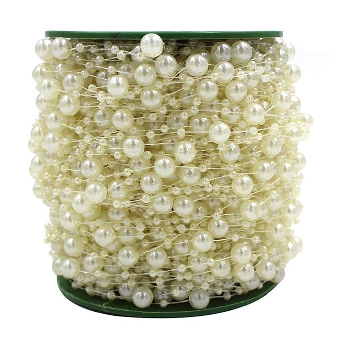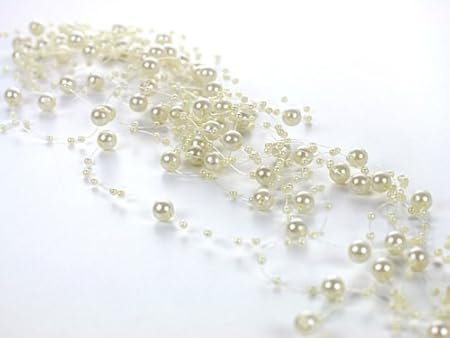 E+N Perlen-Kette Perlen-Girlande Tisch-Deko Blumen-Deko Hochzeit Geburtstag Kommunion Konfirmation Taufe DIY Creme, 8mtr