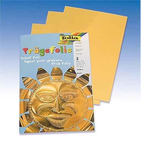 RAYHER 2707006 Alu-Prägefolie, 20 x 30 cm, 0,15 mm stark, SB-Beutel 3 Stück, gold
