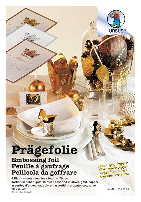 Prägefolie, für Drückarbeiten Stärke: 70µ 18,5cm x 29cm 3 Blatt pro Mappe Farbe: Silber › Weitere Produktdetails