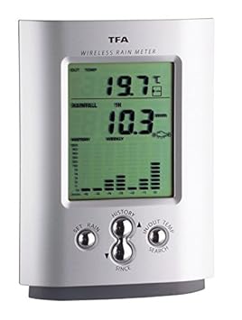Mit dem drahtlosen Regensensor, der eine Reichweite von bis zu 50 Metern (freies Feld) hat, können Sie jetzt die Niederschlagsmenge z.b. in ihrem Garten messen. Der Regenmesser dieser Wetterstation ist aus Kunststoff, dadurch ist dieser Regenmesser frostsicher. Ideal für Ihren Garten. DCF-gesteuerte Funk-Uhr mit Datumsanzeige und Alarmfunktion. Gleichzeitige Anzeige von Zeit, Temperatur und Niederschlagsmenge. Die Niederschlagswerte lassen sich stündlich, täglich, wöchentlich und monatlich digital anzeigen. Die Installation des elektronischen Wasserzählers ist sehr einfach. Da er über Funk funktioniert, brauchen sie keine Kabel zu ziehen und Sie können die Werte bequem im Haus ablesen. Obwohl der Regenmengenmesser sehr sparsam im Batterieverbrauch ist (15mA bei der Übertragung und 10?A im Standby-Modus), zeigt die Inneneinheit eine schwache Batterie des Regenwassermessers an.
