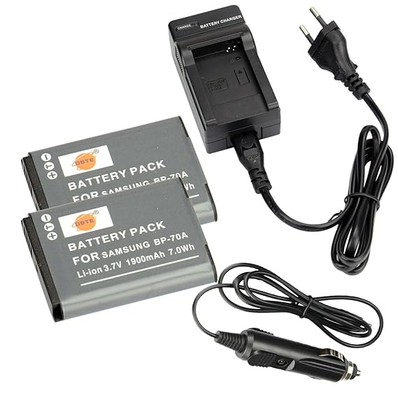 DSTE® Ersatz Batterie und DC97E Reise Ladegerät Kit für Samsung BP70A ST30 ST60 ST61 ST65 ST66 ST67 ST70 ST71 ST72 ST76 ST80