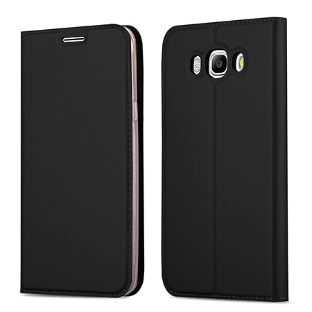 Cadorabo Hülle für Samsung Galaxy J5 2016 (6) - Hülle in Nacht SCHWARZ – Handyhülle mit Magnetverschluss, Standfunktion und K