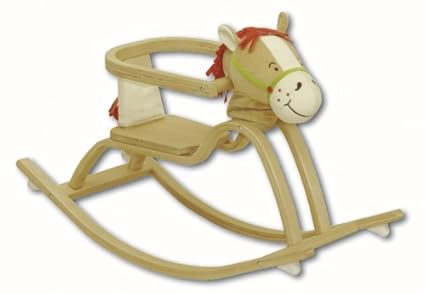 Das Schaukelpferd ist mit zwei Holzgriffen sowie einem stabilen Holzgestell ausgestattet, mit weichem Plüsch gepolstert und dazu sollte trotzdem ein Erwachsener während des Schaukeln aufpassen, dass nicht zu heftig geschaukelt wird.