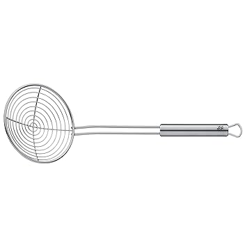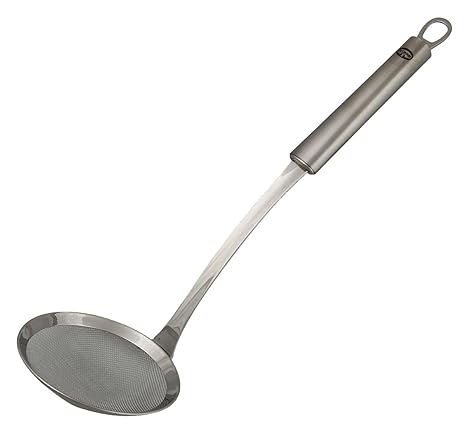 Material: Edelstahl 18/10 (hygienisch und geschmacksneutral); 36,5 x 12 x 7,3 cm; Ø 12 cm; 0,215 kg Ideal zum Abschöpfen, Abseihen und Herausheben von Speisen Extra breiter und flacher Boden nimmt auch empfindliche Speisen schonend auf Kleinteile können restlos aus der Flüssigkeit gehoben werden Gastroqualität; spülmaschinengeeignet