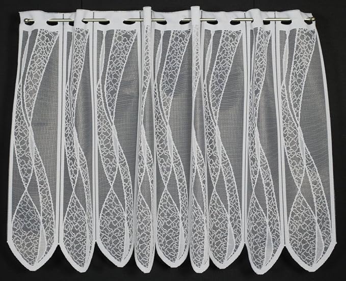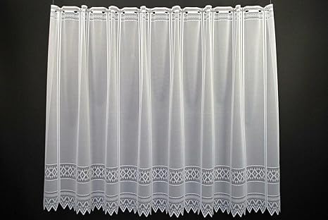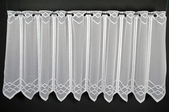 Scheibengardine weiß durchbrochen Ornamente 30 cm 45cm 60 cm oder 90 cm Hoch ab 1 Meter, Höhe:90