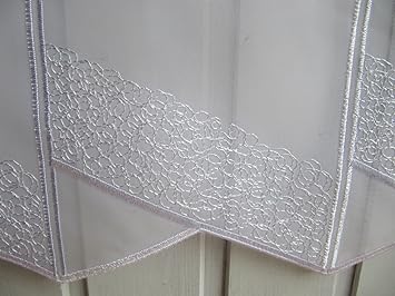 1 Stück = 32 cm breite Scheibengardine mit edler Stickerei Ranke auf halbtransparentem Voile