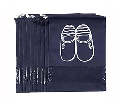 ?Material? Hergestellt aus hochwertigem Vliesstoff, transparentem Kunststoff und dickem Kordelzug. ?Design? Das transparente PVC macht klar, welche Schuhe drin sind und muss nicht geöffnet werden; Der Fersenkordelzug wird deinen High Heel nicht beschädigen. ?Menge? 5 Stück Medium (28 * 37CM) und 5 Stück L Größe (32 * 44CM).Geeignet für Hausschuhe, Sandalen, Lederschuhe usw. Bitte wählen Sie Anzug als Ihre tatsächliche Größe. ?Vorteil? Leicht und tragbar, wasserdicht und staubfrei; ideal für Reisen und Geschäftsreisen. ?Wilde Anwendung? Ideal für Reisen und Geschäftsreisen, auch ein guter Helfer für Haushaltsschuhschrank und Organisation anderer Kleidung.