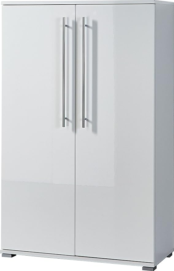 Germania 3524-84 Schuhschrank mit Hochglanz-Fronten GW-Adana in Weiß, 90 x 120 x 36 cm (BxHxT)