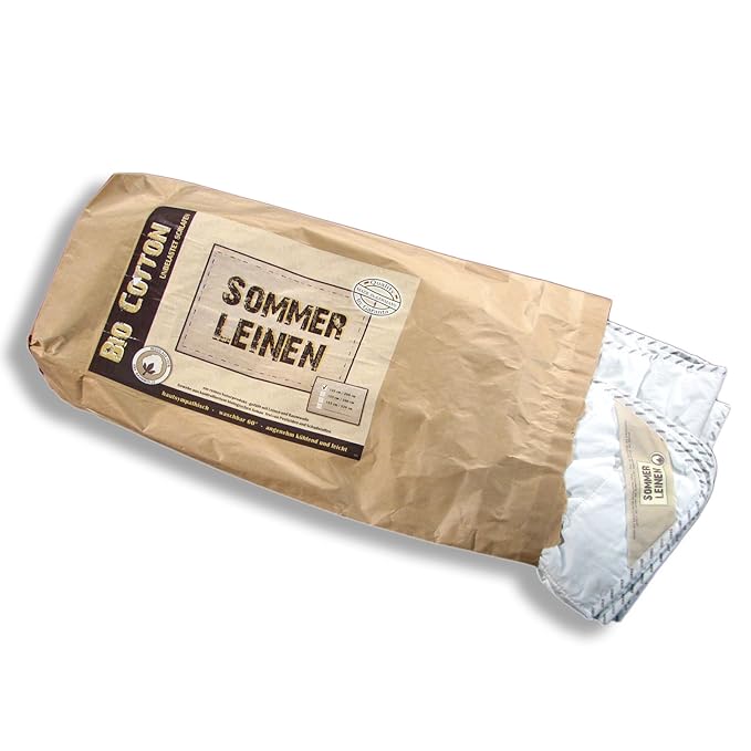 Luftig leichte Sommerdecke mit kühlendem Leinen für heiße Sommernächte Material: Inlett aus 100% feiner Baumwolle | Füllung mit kühlendem Leinen (60%) und weicher Baumwolle (40%) Pflege: Maschinenwäsche bei 60°C Maße: Standard (ca. 140x200 cm) natürliches Material für ein angenehmes, trockenes und gesundes Kleinklima in Ihrem Schlafbereich