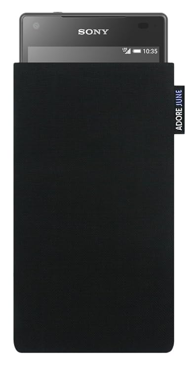 Speziell für das Sony Xperia Z5 Compact (ohne Schutzhülle oder Bumper) entwickelte Handytasche mit exakter und optimierter Passform Zeitloses und auf das Wesentliche reduzierte Design; Design by Adore June in Hamburg Schützt das Smartphone vor Staub, Schmutz und Kratzern und ermöglicht dank der optimierten Passform leichten und schnellen Zugriff auf das Smartphone Diese Tasche ist handgearbeitet. Adore June legt großen Wert auf Materialien und eine hohe Qualität bei der Verarbeitung. Produziert in Europa Aus einem unempfindlichen Fischgratstoff auf der Vorder- und einem schwarzen Canvas Stoff auf der Rückseite. Das weiche Fleecefutter reinigt und schützt das Display