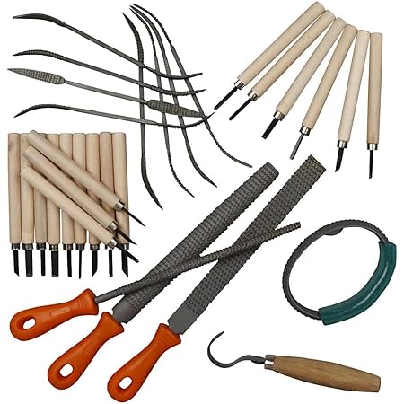 GROSSER LIEFERUMFANG: 31 Werkzeuge für alle Arbeitsschritte wie Aushöhlen, Feilen und Schnitzen ebenso wie für den Nassschliff und Trockenschliff.