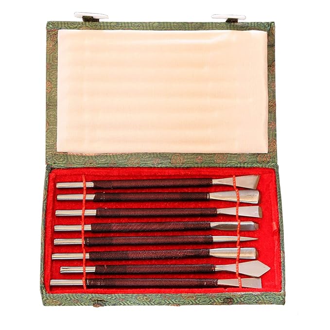 Specksteinmeiße Stahlmeissel Speckstein Schnitzen Bearbeiten, Specksteinmeißel-Set Nr. 2, 10 tlg., 10 Stahlwerkzeuge zum bearbeiten und schnitzen von Speckstein im Holzetui. sehr stabil und brauchbare Qualität!!! › Weitere Produktdetails
