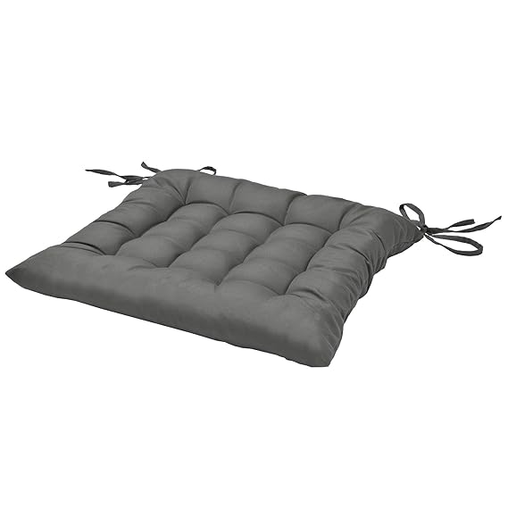 4 Sitzkissen im Set: ca. 38 x 38 cm große Kissen als Sitzauflage für Esszimmer- oder Terrassenstühle mit 40 x 40 cm Sitzfläche 100% Polyester: Die Stuhlkissen sind angenehm weich und schützen zudem empfindliche Oberflächen vor Kratzern und Schmutz Waschbar: Bei Verschmutzungen sind die Polster problemlos bei 30°C waschbar Mit Schleifenbändern zur Befestigung: Mit den 30 cm langen Bändern lassen sich die Auflagen sicher an Ihren Gartenstühlen festbinden - auch bei Bewegung und Wind rutschen sie nicht von der Sitzfläche Sitzkissen in dezentem Grau - Fügt sich in nahezu alle Einrichtungsstile ein