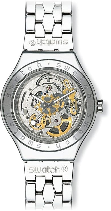 Swatch Herren Analog Quarz Uhr mit Edelstahl Armband YGS134G