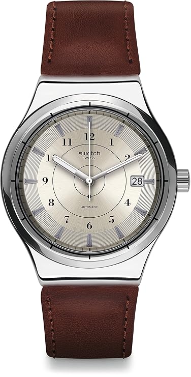 Swatch Herren Analog Quarz Uhr mit Leder Armband YWS440