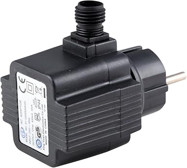Markenqualität, GS geprüft Ein: 230V ~ 50HZ; Aus: 12V ~ 400mA 4,8W IP44 zertifiziert, für den Außenbereich geeignet Stromausgang für 2-poliges 12V-Stecksystem Optimal für unsere Wasserspiele und LED-Beleuchtung