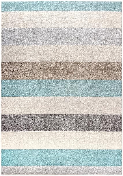 Kinderteppich der Premiumklasse aus dem Hause TaraCarpet Flachflor-Teppich in aktuellen Pastel Farben Blau, Weiß, Mint und Rose auch Grau - Hoch-Tief-Effekt durch Konturenschnitt - schillernde Farben durch eingearbeitetes Effektgarn - geeignet für Fußbode