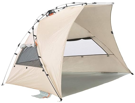 3-Personen-Sonnenschutz (Gepackt: Ø15 * 80 cm) , einfaches Öffnungs- und Verschlusssystem , extra große Fenster zur Belüftung , Taschen für persönliche Gegenstände, 98% UV Schutz (SPF 50+) , Bodenplane dient auch als Tür (Privatsphäre)