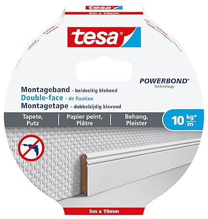 Besser kleben statt bohren: Das Powerbond Ultra Strong ist das stärkste Montageklebeband von tesa und hält bis zu 6kg - kinderleichte Montage ganz ohne Bohren und Werkzeug Das Hochleistungsklebeband ist für den Innen- und geschützten Außenbereich geeignet, auch für schwere Gegenstände in Bad oder Küche Das Montageband ist für eine Vielzahl von Materialien geeignet: Kacheln, Holz, Stein, Metall und die meisten Kunststoffe Das doppelseitige Klebeband ist die clevere Alternative zum Bohren und Hämmern dank zuverlässiger Haftung - ganz ohne Schäden und Löcher im Untergrund Lieferumfang: 1 x Powerbond Montageklebeband Ultrastark / Zweiseitiges Klebeband für eine schnelle und zuverlässige Befestigung / 5m x 19mm › Weitere Produktdetails