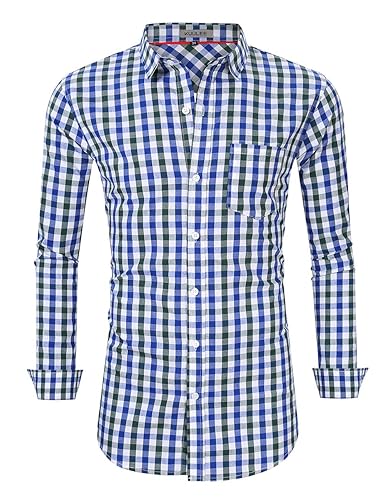 KOJOOIN Trachtenhemd kariert Herren Hemd Freizeithemd Landhausstil Langarmhemd Slim fit Hemd Bestickt Baumwolle - für Karneva