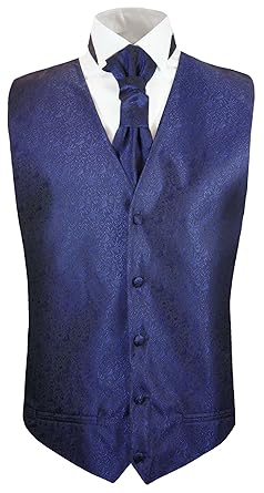 Elegante Trachtenweste Gilet Silbergrau-Dunkelblau Mario mit Edler Musterung Gr. 46-62