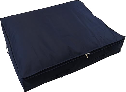 Strapazierfähige Unterbettkommode für Bettwäsche oder Kleidung - 150 Liter, schlankes Design: 125 x 80 x 15cm Extra-große Größe für King Size oder Doppelbettdecke, Kissen oder Kleidung Aus belastbarem 600D-Gewebe mit vier verstärkten, vernähten Tragegriffen (zwei vorne, einer an jeder Seite) Hochwertiger Drei-Seiten-Reißverschluss zum vollständigen Öffnen vereinfacht das Befüllen Bei Nichtverwendung zusammenlegbar, Maße bei vollständiger Öffnung: 125 cm x 80 cm x 15 cm