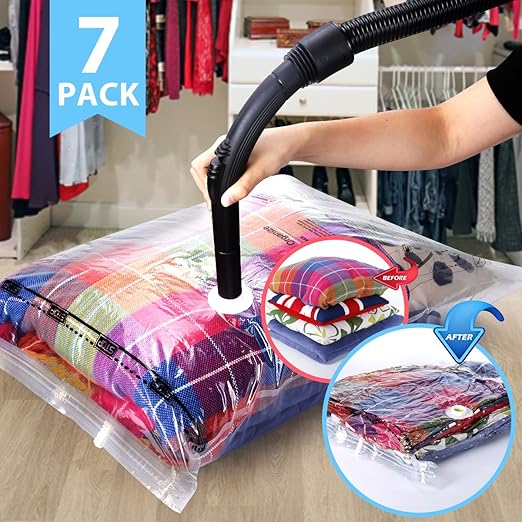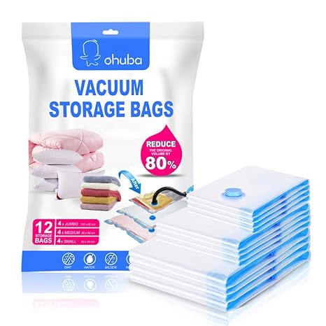 Ohuba 12 Stück Vakuumbeutel, Aufbewahrungsbeutel Reise Vakuum Wiederverwendbar Kleiderbeutel für Kleidung Bettdecken Bettwäsc