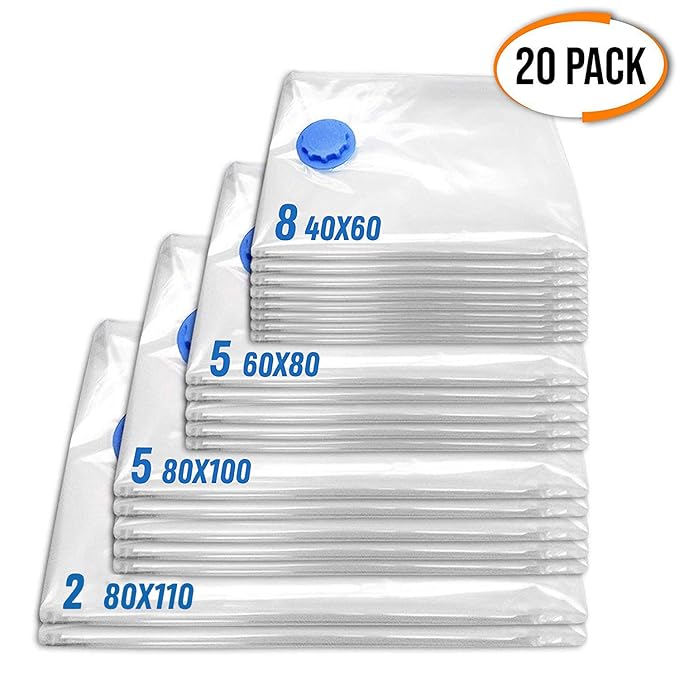 20x Vakuum Beutel Kleidung Aufbewahrungsbeutel für Bettdecken und Klein Reise Vakuumbeutel Rollen für Kleidung | 2x 120x100cm