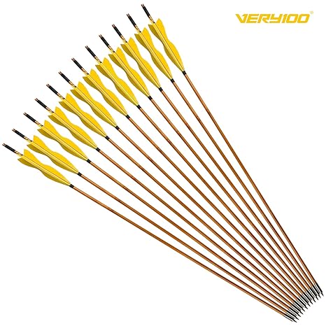 VERY100 12er 32 Zoll Pfeile für Bogen Traditional Holzpfeile aus Bambus 2018 mit Alu Gewindevorschneider für Broadheads