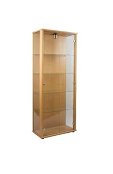 VCM Vitrine Sammelvitrine Glasvitrine Standvitrine Glas Schrank Regal ohne Beleuchtung Buche 'Edana Maxi'