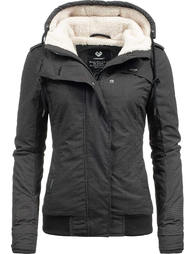 Lässige Winterjacke (Kurzmantel) perfekt kombinierbar egal ob Urban, Street-Wear oder zu sportlichen Looks Gefütterte Allround Outdoor Jacke vom Top angesagten Street Wear Label Ragwear, schöner taillierter Schnitt (perfekte Passform), wertige Materialien und 100% vegane Herstellung Verschluss: Reißverschluss Obermaterial: 65% Polyester, 35% Baumwolle, Futter 100% Polyester, Wattierung 100% Polyester Pflegehinweis: Maschinenwaschbar bei 30°C Dieser Damen Wintermantel ist sehr warm: Geschmeidiges Innenfutter und Kapuzenfutter aus kuschelig weichem Teddy Fleece, gefütterte Taschen (gegen kalte Hände) Parka mit hoch schließendem Reißverschluss, schützt den Hals perfekt vor Wind und Kälte, mitteldick gefütterte Jacke mit softem Teddyfell und Kapuze Praktische Details: Winterparka m. Reißverschluss Innentasche fürs Smartphone, Kapuze mit dicken Tunnelzug Kordeln, perfekte Länge bis knapp über den Po