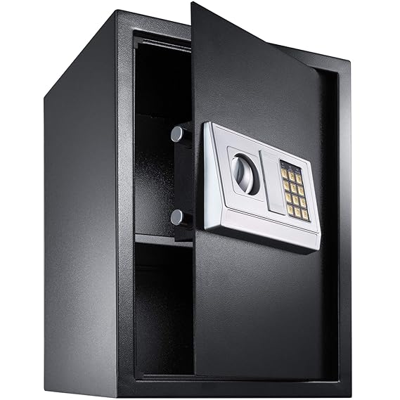 Möbeltresor mit solidem einwandigen Korpus und Tür aus Stahl, Doppelbolzen-Verriegelung Elektronisches Zahlenschloss, Es können 3 - 8 stellige Codes programmiert werden Zusätzlich manuelles Schlüsselsystem zur Notöffnung Wandstärke 2 mm, Türstärke 4 mm Außenmaß: 310 x 200 x 200 mm (B x H x T), Innenmaß: 306 x 196 x 140 mm ( B x H x T) › Weitere Produktdetails