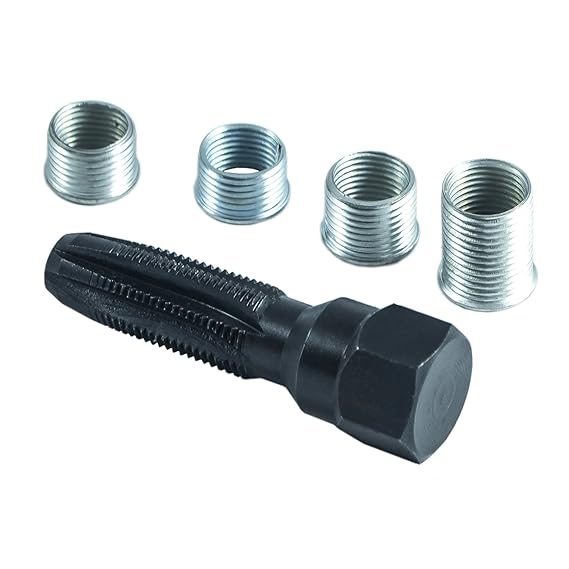 100% Brandneue und hochwertige Zündkerze fädeln Gewinde und Einsätze Ein schöner Werkzeugsatz zur Reparatur beschädigter Zündkerzengewinde und Verlängerung der Zündkerzen-Servicezeit Diese Zubehörteile aus gehärtetem Kohlenstoffstahl haben eine hohe Festigkeit und eine lange Lebensdauer Mit vier Einlagengrößen für verschiedene Zündkerzen mit 14mm Gewindegröße Einfach zu bedienen und zu bedienen. Kommen Sie und versuchen Sie es